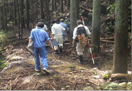 ノ谷通常砂防事業にかかる用地測量業務」の様子を、業務の流れに沿ってご紹介