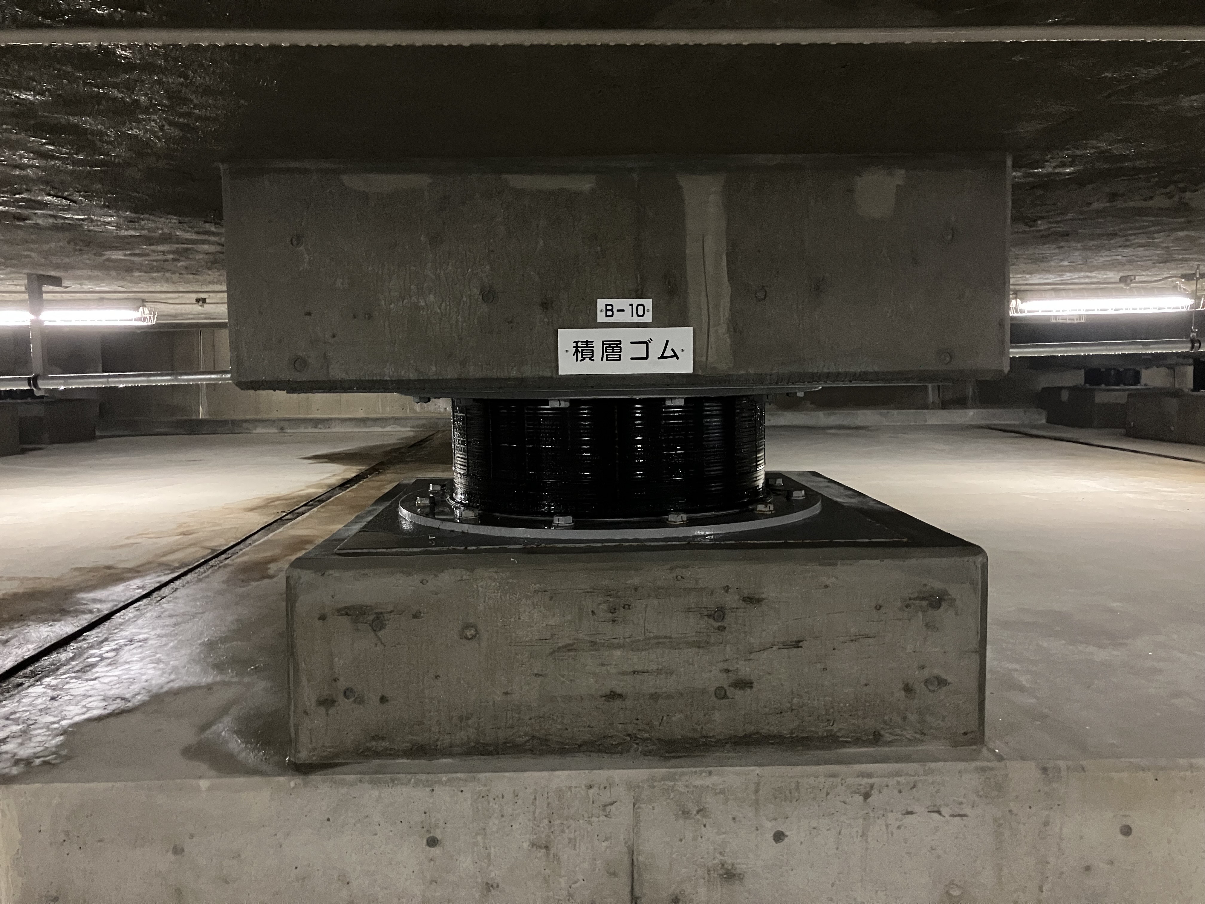 県庁屋上(伊勢湾・津市周辺の街並み 東・西・南・北)屋上から見える市内の景色についてご説明をします。 免震装置免震装置は、建物の固有周期を長くし、地震時の強い短い周期での動きを免れる働きをします。地震力を減衰し、ゆっくりとした揺れに変換して県庁の建物を守る仕組みを説明をします。 |