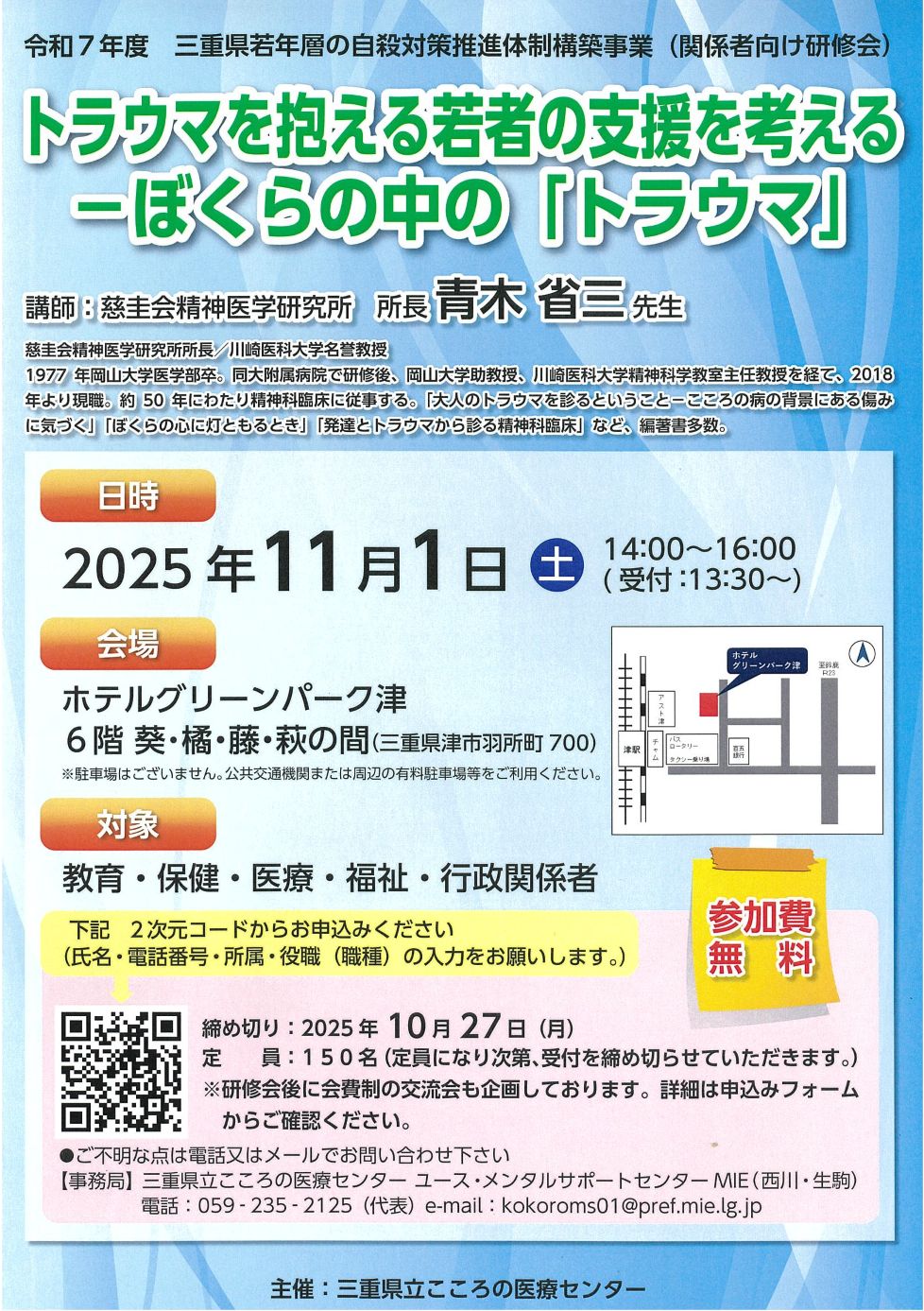 1.研修会名 令和7年度三重県若年層の自殺対策推進体制構築事業関係者向け研修会