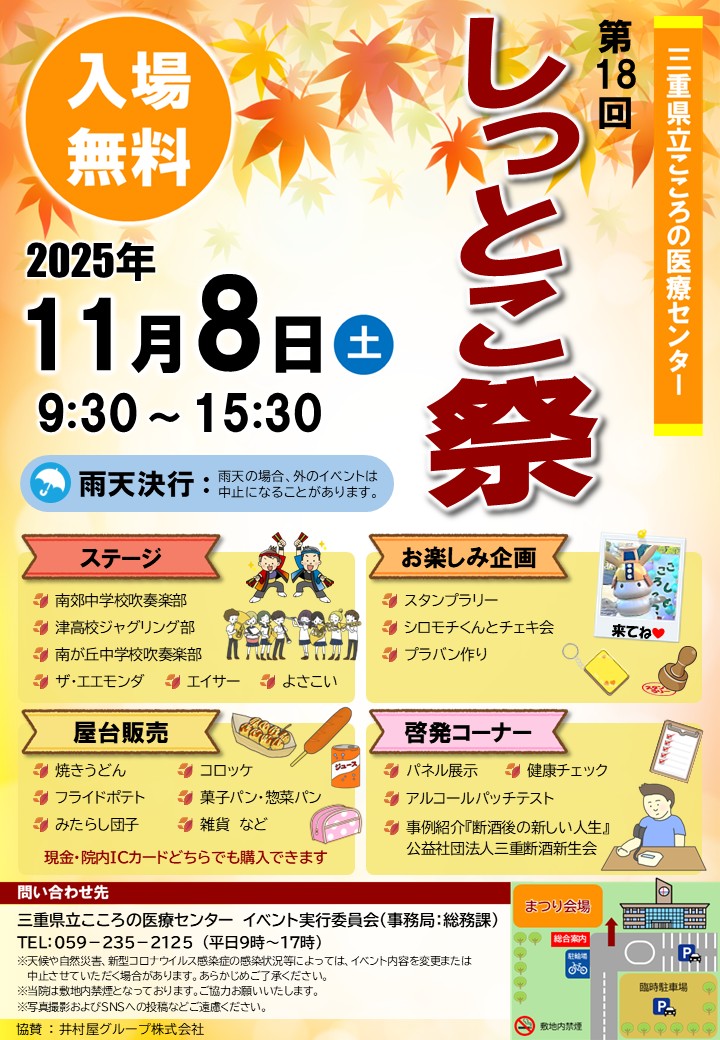 詳細は「三重県立こころの医療センター第18回しっとこ祭ポスター(PDF)」をご覧ください。