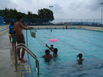| プールでは子どもたちを対象にしたゲームを開催 | |