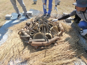 10時から16時までの長時間に及ぶイベントでしたが、遠方から参加されていた方以外は全員が最終の覆い焼き終了まで見学され、事後アンケートでも「とても楽しかった」という声をたくさんいただきました。参加者のみなさんにおかれましては今回の経験をきっかけに、文化財への興味、関心を深めていただけると嬉しいと思っております。