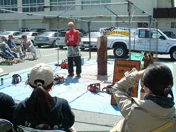 平成20年3月22日(土)、多紀郡多気町の「多気町民文化会館」(「木の文化県・みえ」フォーラムの会場)において、チェンソーアートの実演会を開催しました。