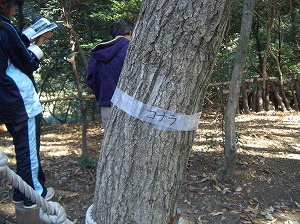 校舎敷地内に隣接する学校林「あきらのもり」で、森林や樹木と親しむ活動として、樹木の名前調べを行いました。(6年生の総合学習の一環)次回の活動(1月)では、今回、調べた樹木の名札着けや、間伐体験などを予定しています。