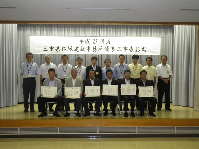 この表彰は、三重県松阪建設事務所発注の工事において、優良と認められる工事(受注者及び技術者)を表彰するものであり、松阪建設事務所優良工事審査委員会が選定を行いました。