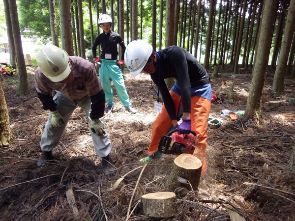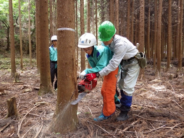 生徒たちは、何もかも初めて体験することばかりのようで、特にチェンソーの操作は緊張しつつも楽しそうに体験していました。