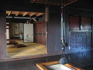 古い家に食事にみえた方が、古い家でもこういう家だったら泊まりたいと言うようになり、それを受けて民宿をやってみようかなと思いました。町役場でも支援するということで、民宿をやることの足がかりになったのですけれども。(民宿の写真を示して)これちょっと一見新しいようですけども、だいたい120年ほどたっているものを移築してきたのですが、これを今娘が責任者としてやっています。私、2人娘がいて、1人息子がいるのですけれども、末娘がこれをやりたいと言い始めましたものですから、私の代で農家が終わるかなと思っていましたが、娘が、「母ちゃんが、近頃にこにこして、元気がいいから。その前に、忙しい、忙しいってゆとりがなかった母ちゃんが、近頃は笑って話して、仕事している。そういうふうになったら私も家にいたいなーと思うから、私にさせて。」という話が出まして、嬉しくなりまして、かなり借金しながら、「おりざの森」をやり始めたのです。こちらは、中は土壁を白壁に代えまして、明るくなりましたし、古い家ではそのままですけど、昔の古い農家とここと違う所は、高断熱高気密という今の手法を取り入れまして、床の下に1m20ばかりの空気の層をはめ込む層を作って、循環するようにやって下さったものですから、ずっとここは、18度から20度の間で温度が、変化していまして、とても暖かく過ごせる様になっています。