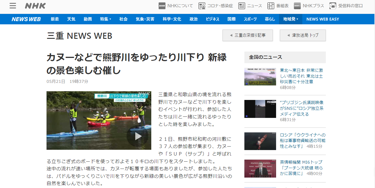 令和5年5月21日(日)、素晴らしい晴天の中、「三重県 熊野・紀宝 カヌー&SUP川下りフェスティバル2023」を開催し、県内外(三重県、大阪府、愛知県、和歌山県など)から37名の方々にご参加いただきました。