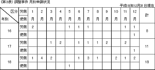 平成18年の調整事件取扱件数は、前年繰越が2件、新規申請が18件で、いずれもあっせんの申請でした。