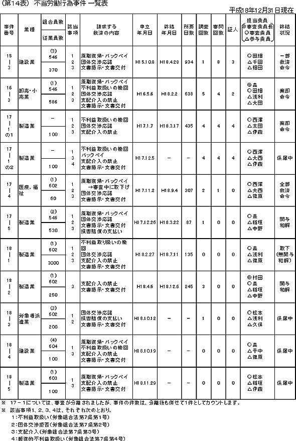 平成18年の不当労働行為事件取扱件数は、前年からの繰越事件5件、新規申立事件5件の計10件でした。