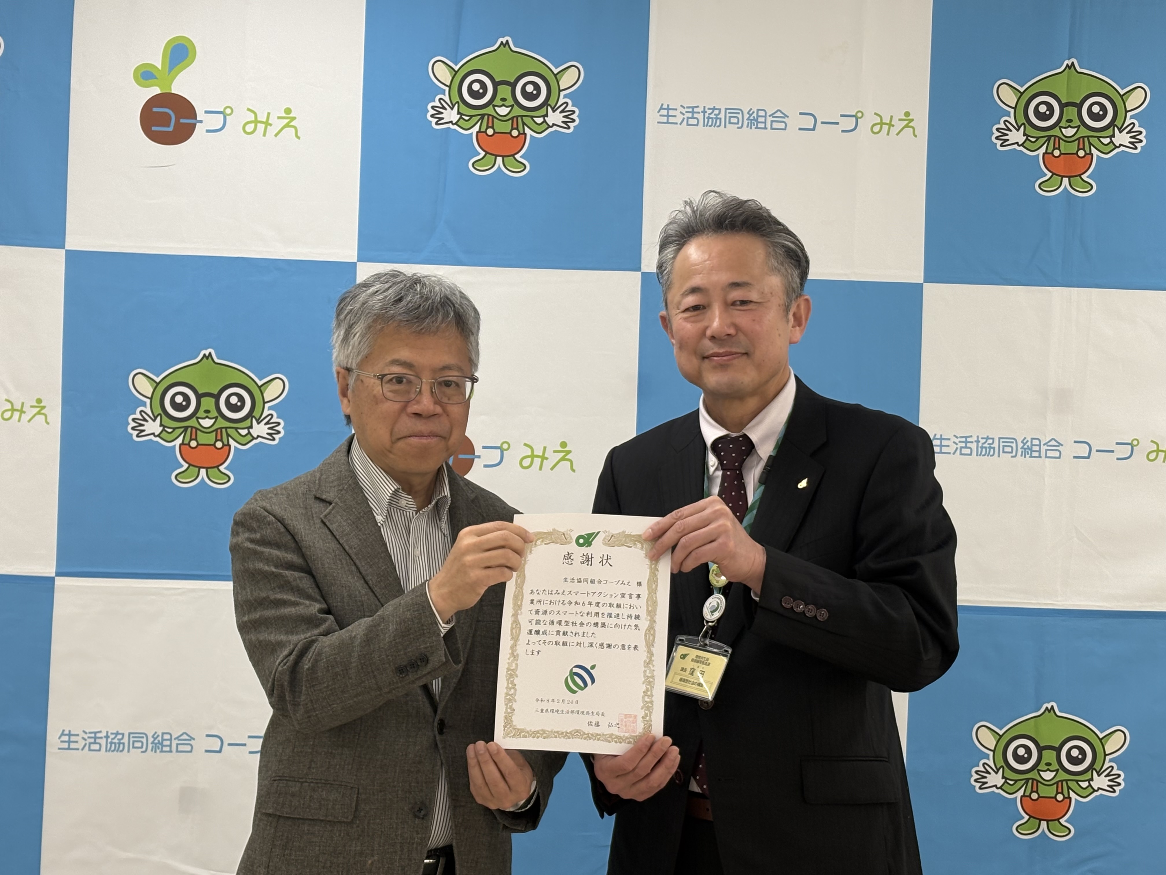 みえスマートアクション宣言事業所における優良な取組に選定した事業者に感謝の意を示すため、令和8年2月に感謝状を贈呈しました。