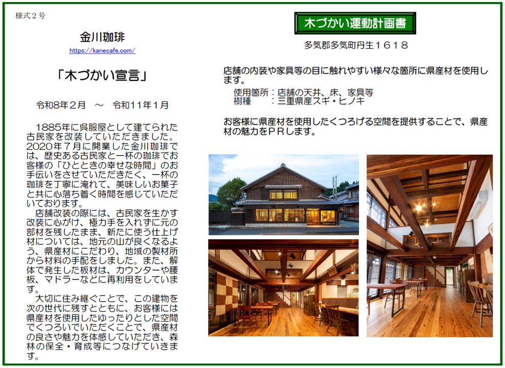 5.  金川珈琲「木づかい宣言」