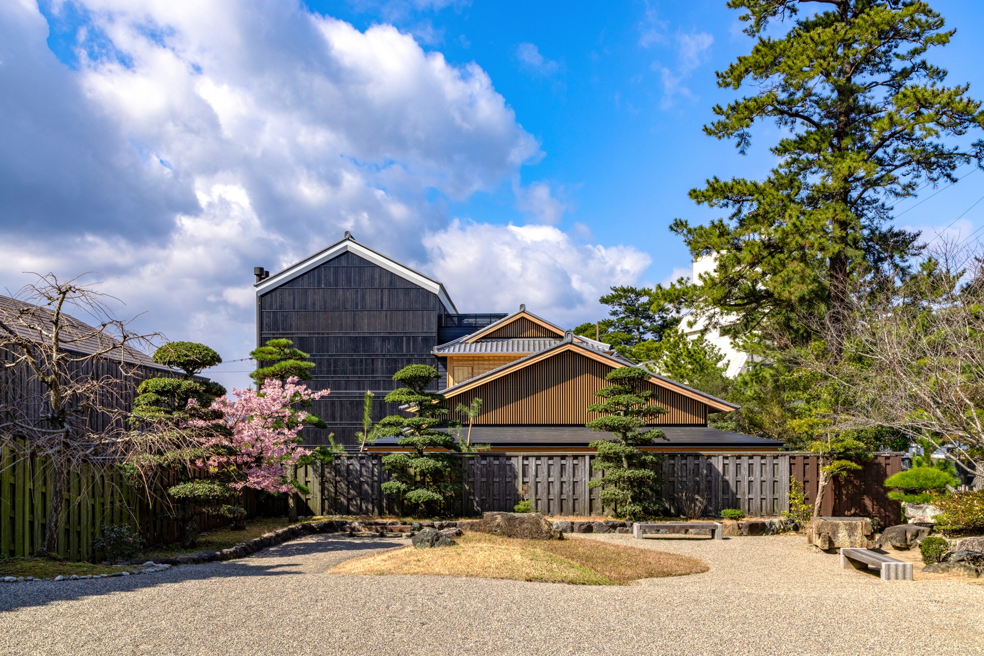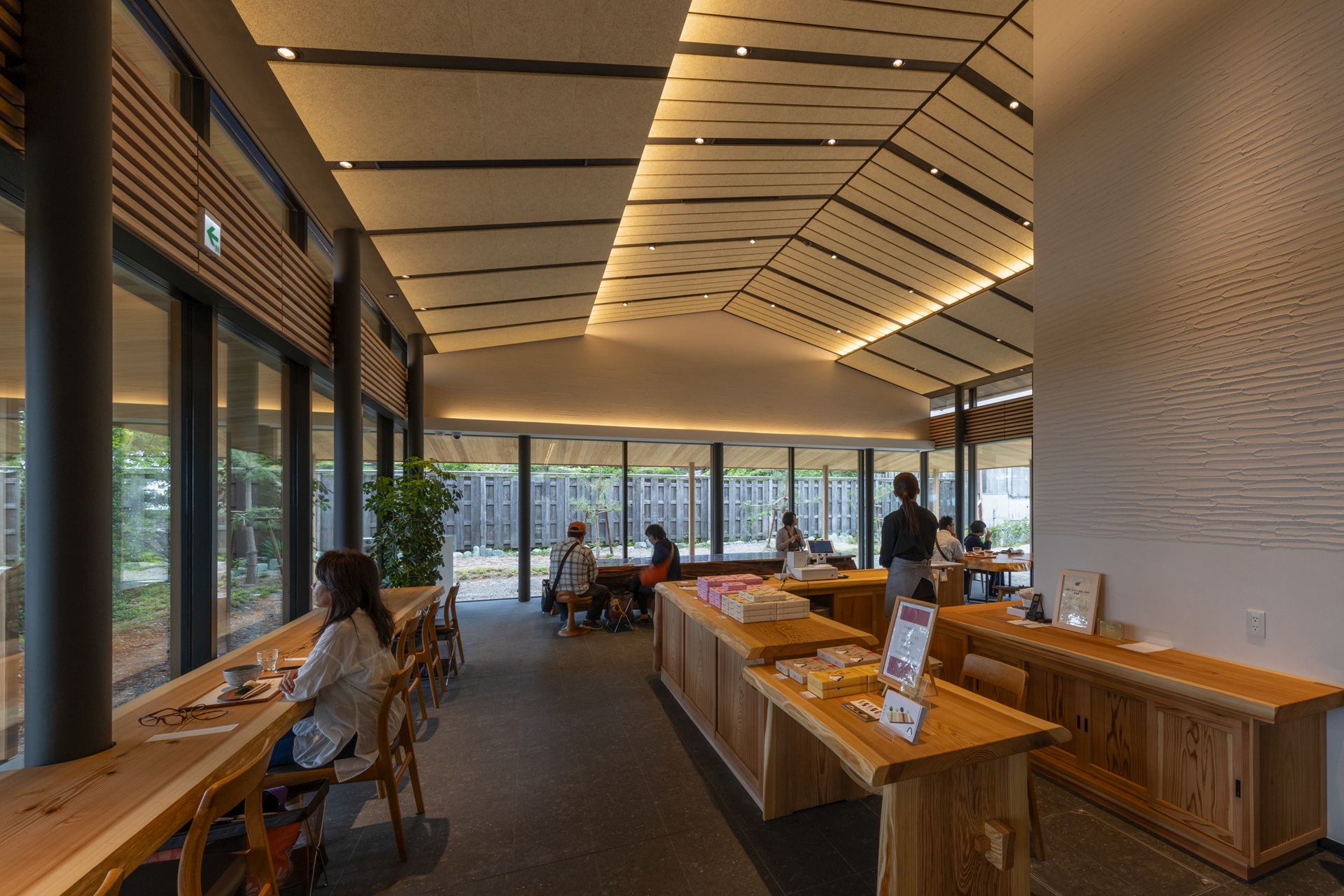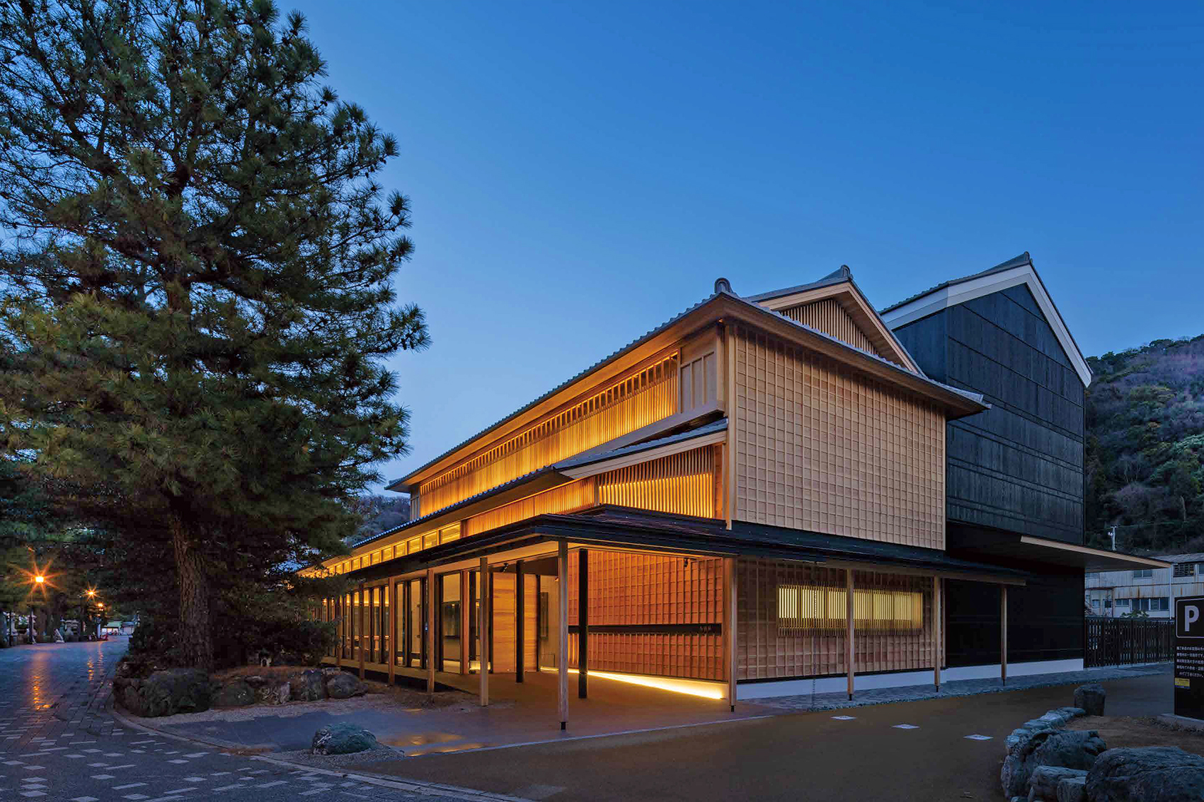 茅葺屋根のシルエットを残した大きな屋根がとても印象的で、伊賀地域の原風景を想起させる佇まいとなっている。