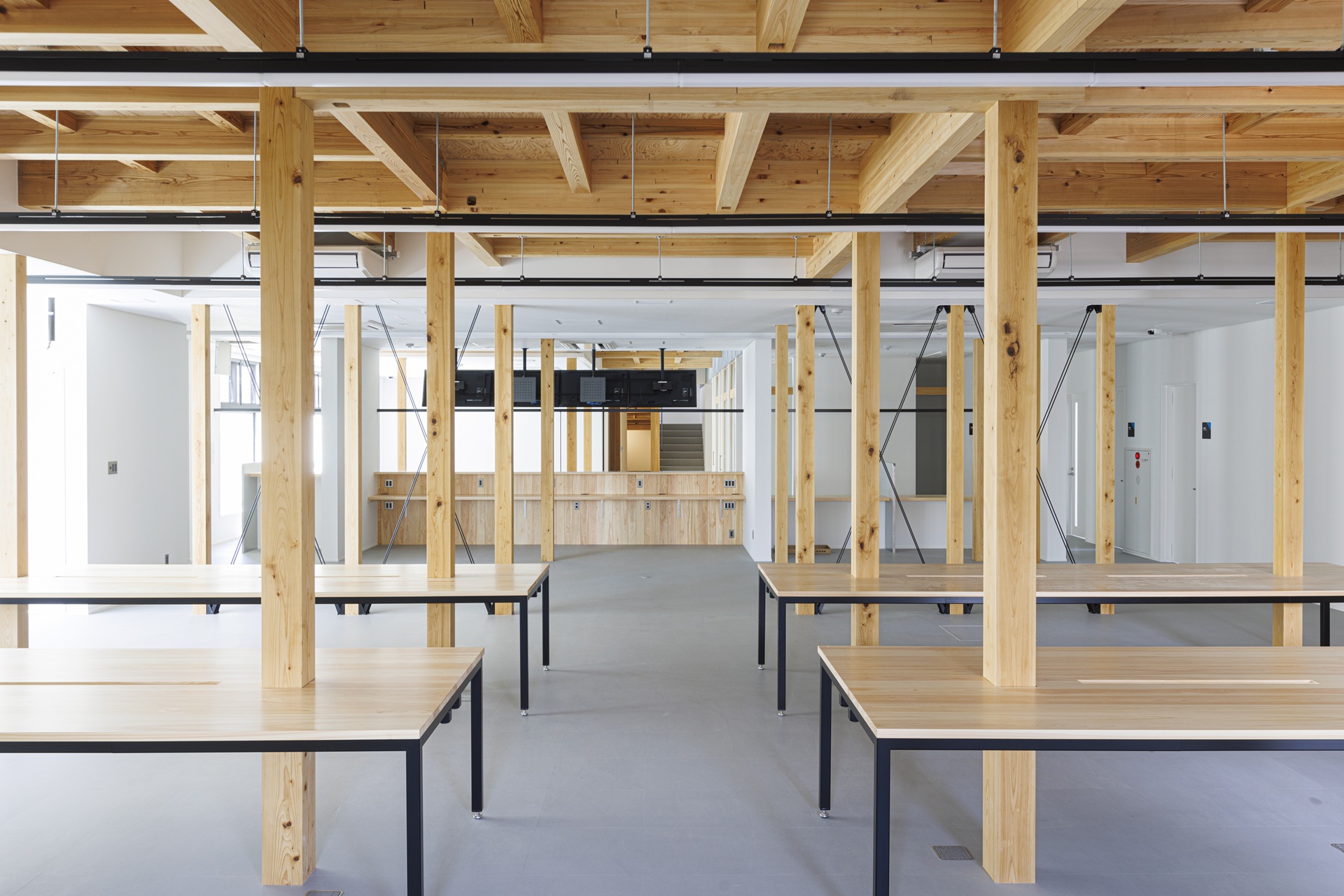機能毎に複数の棟に分け、防耐火計画における法的制限に配慮することで、安全性と経済合理性のバランスの良い建築が実現されている。左官仕上げや工業化建材との調和を図り、意図的に抑制を効かせた木の見せ方からは、無理せず適材適所に木を使う設計意図も汲み取れる。