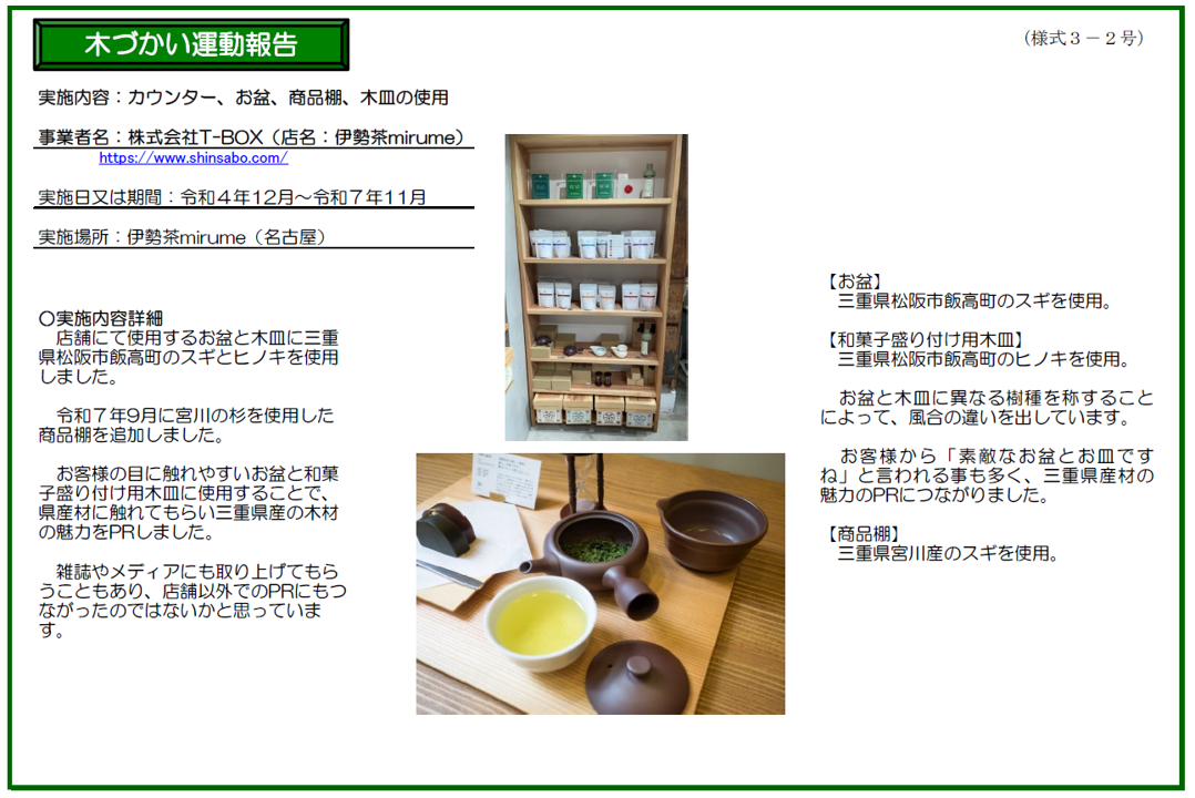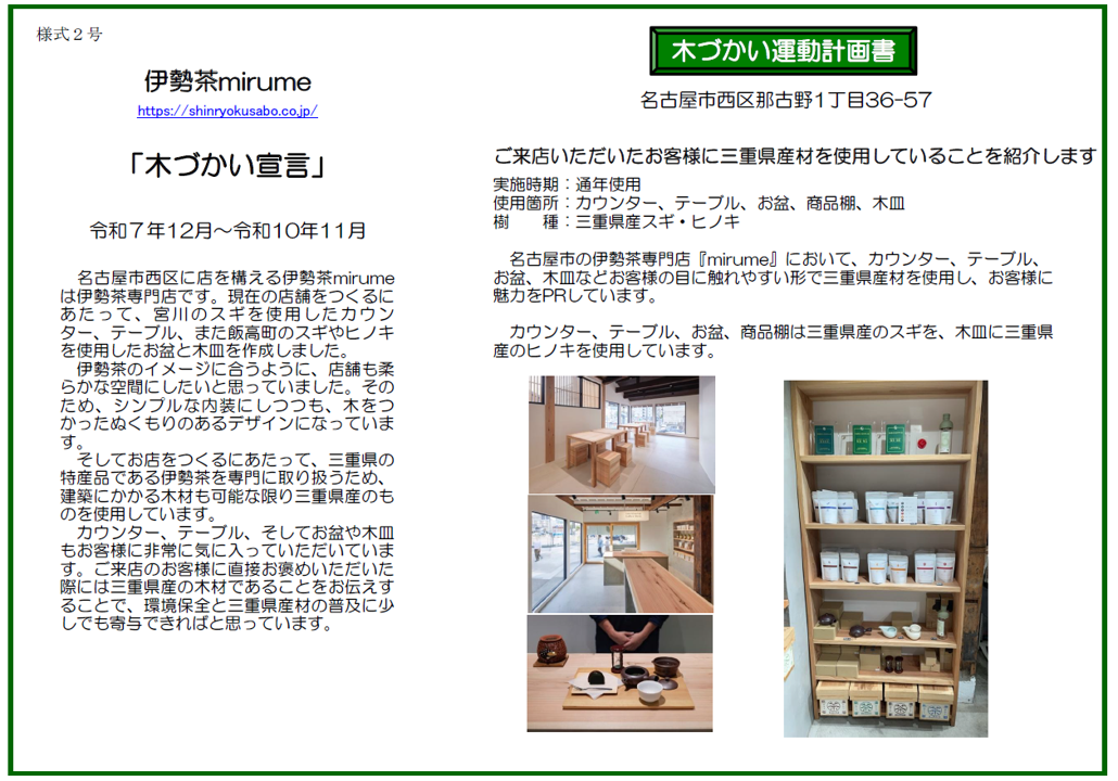伊勢茶mirume(旧:深緑茶房 名古屋店)「木づかい宣言」(1期~3期)