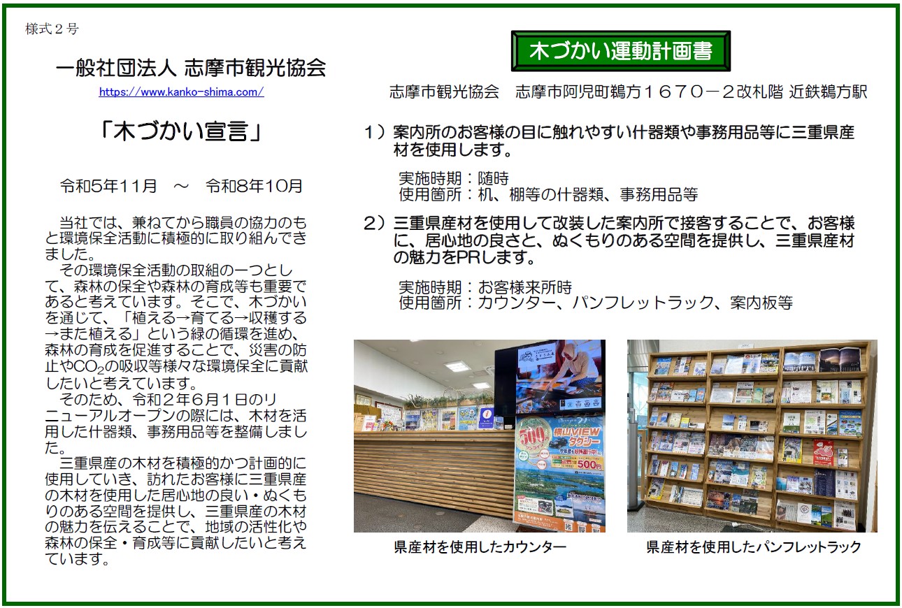 5.  一般社団法人 志摩市観光協会「木づかい宣言」