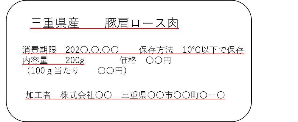 ※牛肉の場合は「牛の個体識別のための情報の管理及び伝達に関する特別措置法(牛トレーサビリティ法)に基づき、個体識別番号の表示が必要です。また、生食用食肉の場合は別途必要な表示があります。