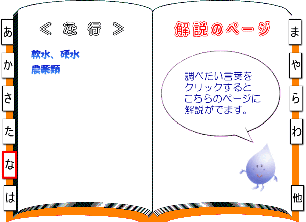 あ行(インデックス) か行(インデックス) さ行(インデックス) た行(インデックス) は行(インデックス) ま行(インデックス) や行(インデックス) ら行(インデックス) わ行(インデックス) その他(インデックス) 軟水、硬水 農薬類