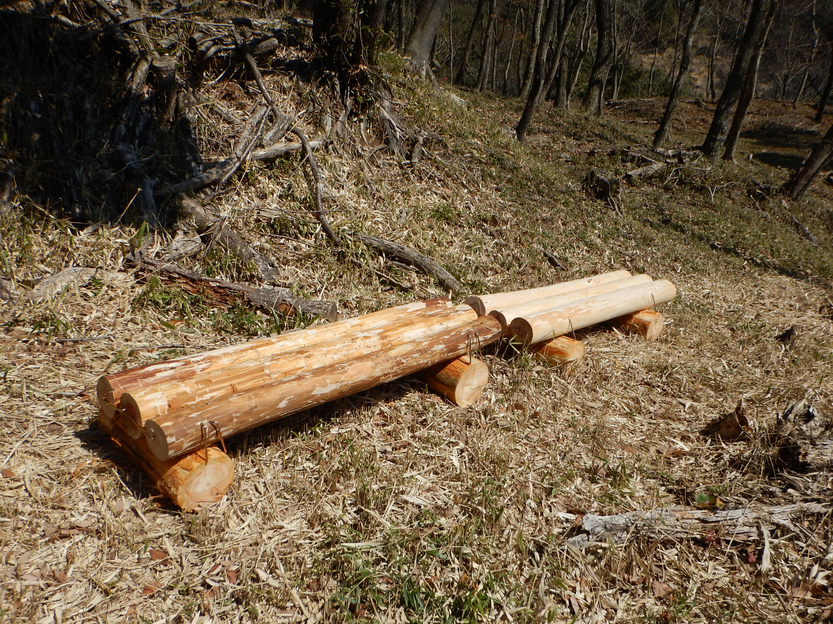 当日は晴天の下、セブン・イレブン関係者72名が参加して、NPO法人もりずむの指導のもと間伐材を活用したベンチ作りを行いました。参加者は、班に分かれ丸太伐りや皮むき、組み立て作業に熱心に取り組み、完成したベンチは、遊歩道沿いに設置されました。また、モニタリング作業として、コナラやカツラなど植栽苗木の状況調査、植栽木周辺の下草刈りなどにも取り組みました。
