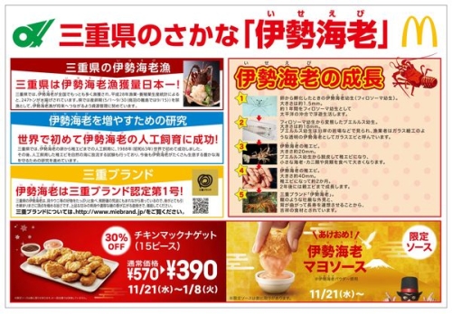 日本マクドナルド株式会社は、三重県産伊勢海老パウダーを使用したチキンマックナゲット用ソー