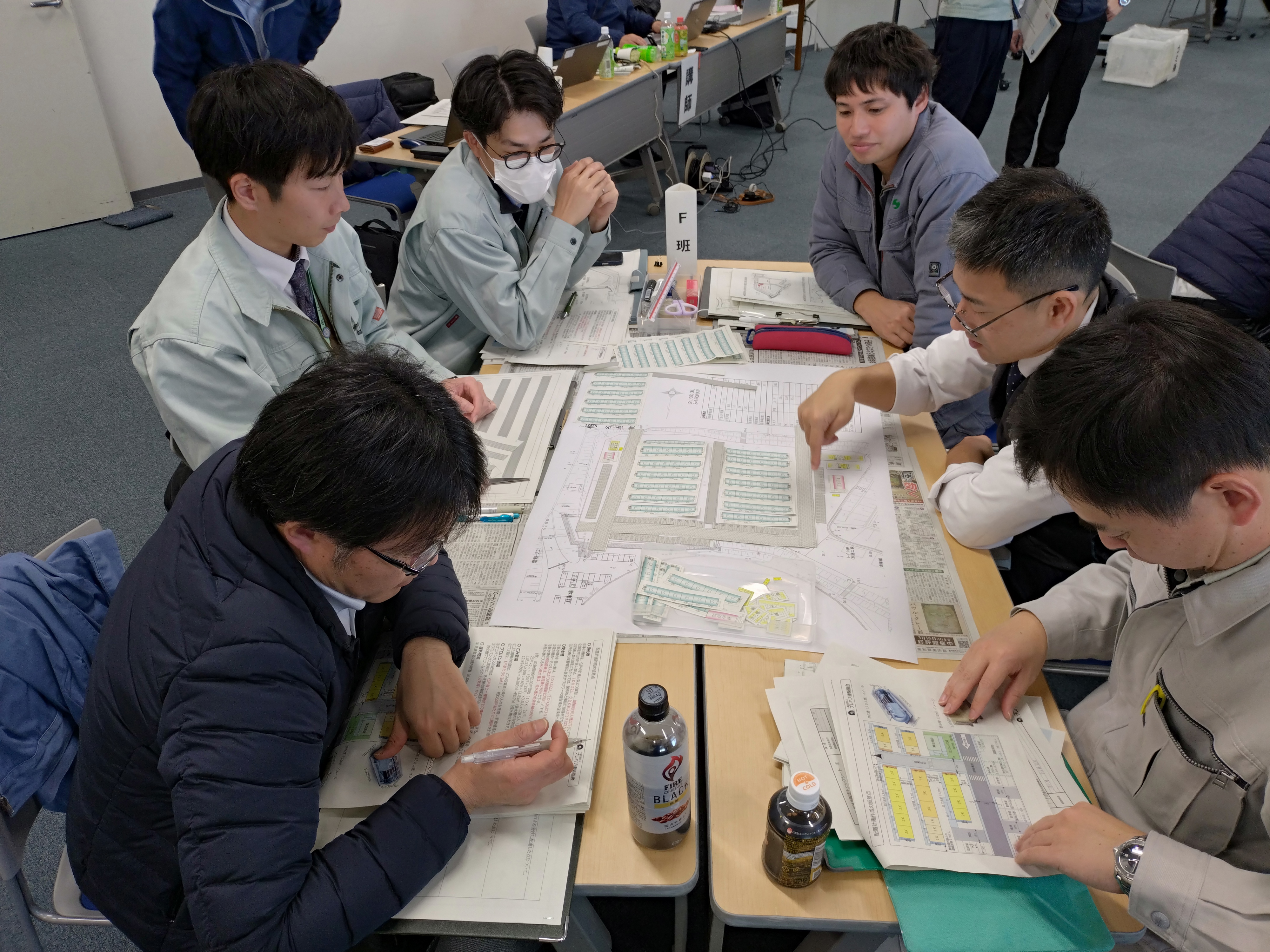 参加者をグループに分け、建設候補地を実際に調査し、想定被災者数をふまえた最適な住戸タイプの選