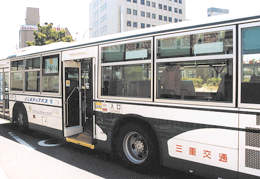 まち中で、よく見かけるようになった、ノンステップバスといわれるものです。間口も広く、すべての人にとって、乗り降りしやすいデザインになっています。