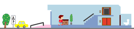 イラスト 位置が高いと、車いすを使う人や背の低い人は困ります。