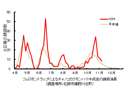 チャノコカクモンハマキ成虫の発生消長