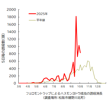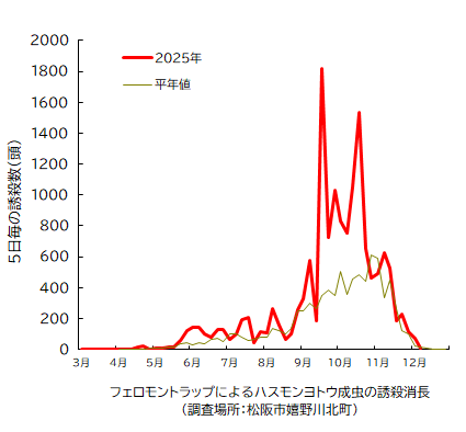 ハスモンヨトウ成虫の発生消長 (調査対象期間:3月1日~12月31日)