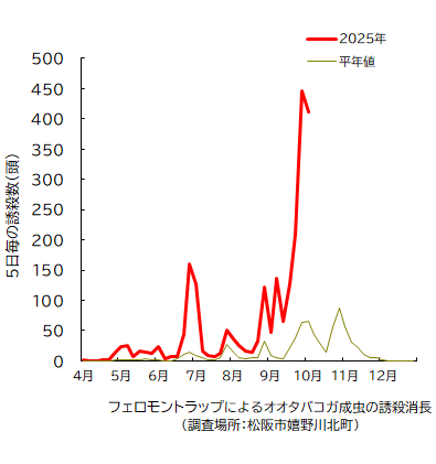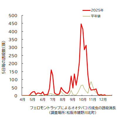 オオタバコガ成虫の発生消長 (調査対象期間:4月1日~12月31日)