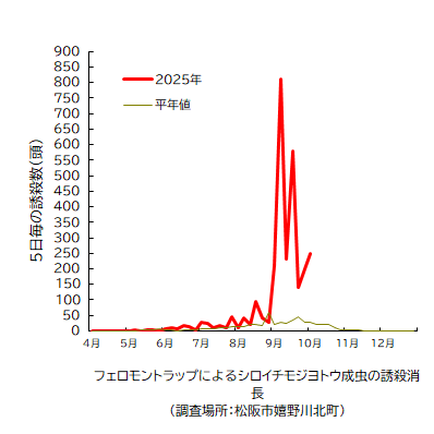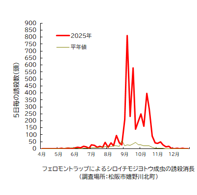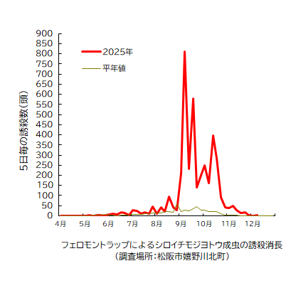 シロイチモジヨトウ成虫の発生消長 (調査対象期間:4月1日~12月31日)