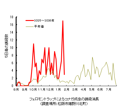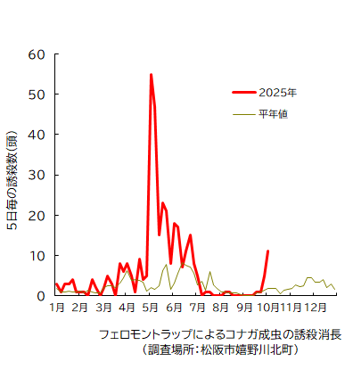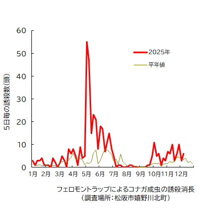 コナガ成虫の発生消長 (調査対象期間:1月1日~12月31日)