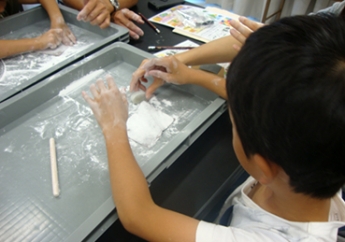 | 三重県総合博物館の実習室で行いました | 石をけずって、自分だけの勾玉をつくる! |