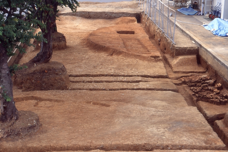 古墳群は古墳時代中期~後期の小規模な方墳を中心に構成され、少数の円墳も含まれています。埋葬施設は残っていませんでしたが、周溝からは須恵器や土師器、埴輪などが多数出土しました。
