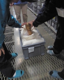 埋蔵文化財センターの仕事について講義 未整理室の見学「あっ…馬形埴輪!?」
