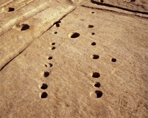 発掘調査は広範囲にわたり、弥生時代中期後葉の集落の様相が詳細に判明しました。竪穴建物は120棟以上も検出され、かなり大規模な集落といえます。調査区東部では大型の竪穴建物や掘立柱建物が複数検出され、集落の中枢的な区域であったとみられます。掘立柱建物は最大のもので長さ18m近くあり、当時としては非常に大型です。三重県内ではほかに例をみないもので、この集落が地域の中心的な存在であったことがうかがえます。